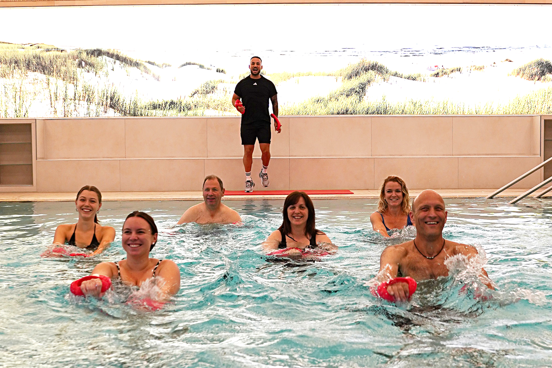 Das Kursprogramm umfasst unter anderem Pilates, Aqua-Fitness, Stretching und Angebote zur Gewichtsabnahme und ist für unterschiedliche Fitnesslevel ausgelegt. Ein Schwerpunkt liegt auf den Aqua-Fitness-Kursen im Mineral-Thermalwasser. Dazu zählt AquaCycling als intensives Ganzkörpertraining auf speziellen Fahrrädern, das Kraft und Ausdauer fördert. Aqua-Power kombiniert dynamische Übungen zur Stärkung der Muskulatur mit Herz-Kreislauf-Training. Speziell auf Gewichtsreduktion ausgerichtete AquaCycling-Kurse finden mehrmals wöchentlich statt und gelten durch das kohlensäurereiche Wasser als besonders gelenkschonend.
