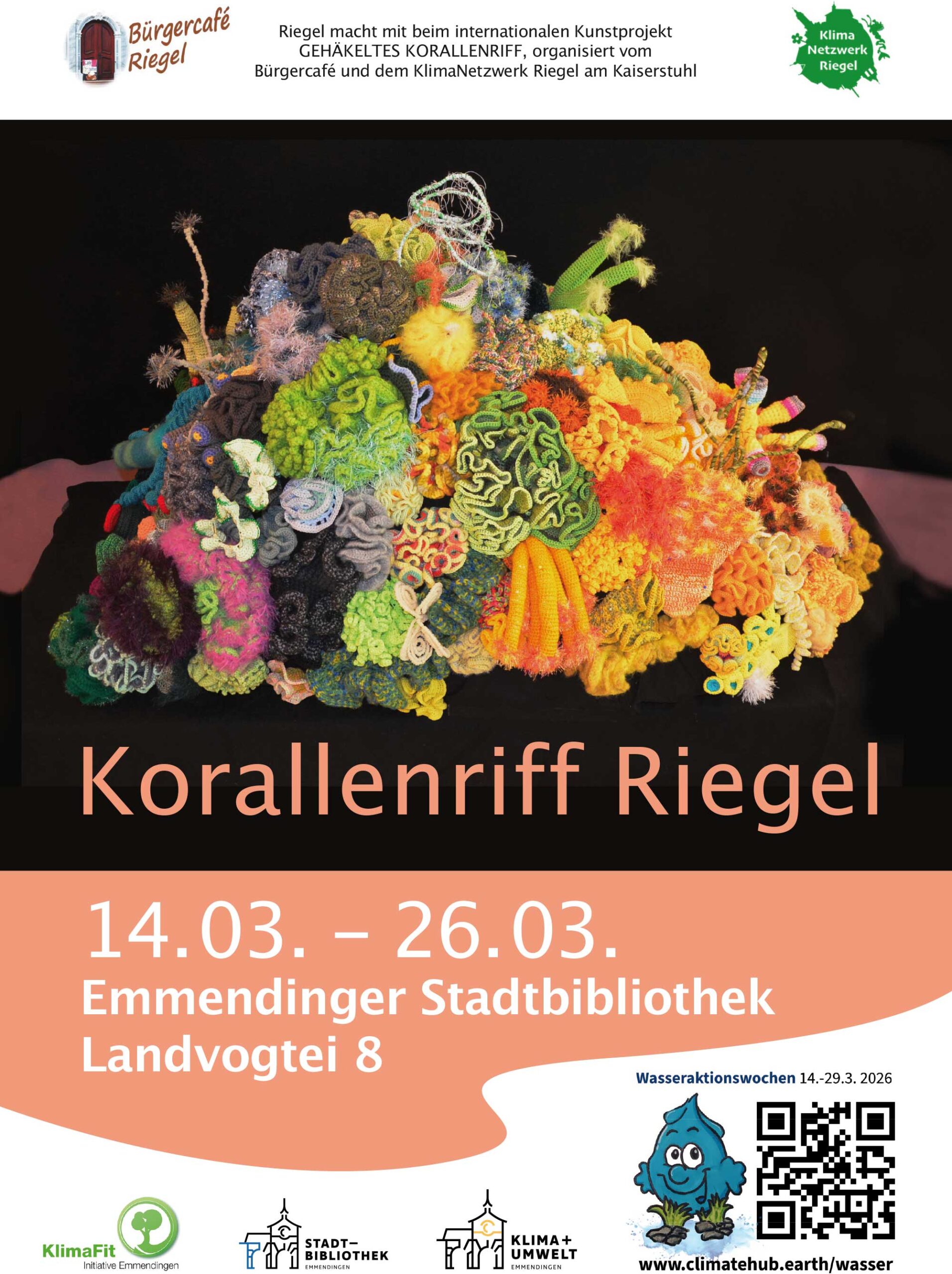 Die offizielle Eröffnung findet am Sonnabend, 14. März, um 10 Uhr in der Stadtbibliothek statt. Im Anschluss wird das Korallenriff zusätzlich im Foyer des Rathauses Emmendingen präsentiert.